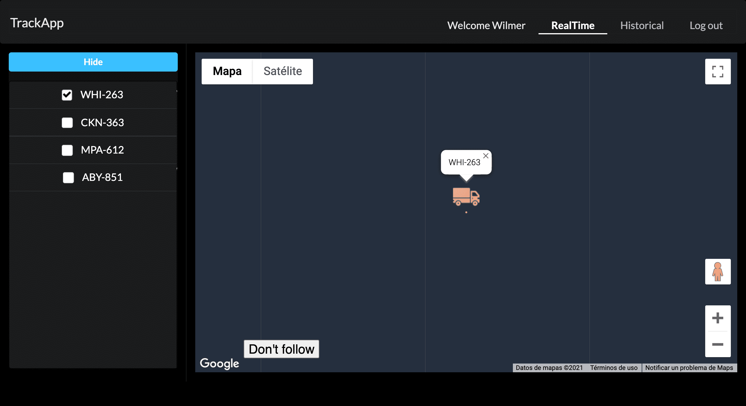 Como mencione anteriormente me plantee reconstruir el proyecto usando tecnologías modernas para estar a la vanguardia ya que realmente me gusto mucho proyecto y en general la programación enfocada a la web, para esta ocasión decidí usar el stack MERN, por lo que me dispuse a aprender las principales diferencias en bases de datos SQL y noSQL, con el objetivo de modelar los datos de mi aplicación en mongo DB. Me plantee un panorama un poco mas realista en el cual la aplicación tuviera autenticación de usuarios y cada usuario pudiera administrar una flota de vehículos, y que la aplicación sirviera como plataforma de rastreo para todos los vehículos de cada usuario. Este fue el resultado: