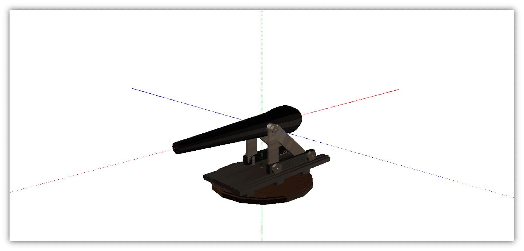 Inspirado en múltiples imágenes de cañones en internet decidí construir un cañón con base de madera, ya que la librería también permite definir materiales y colores a las superficies.